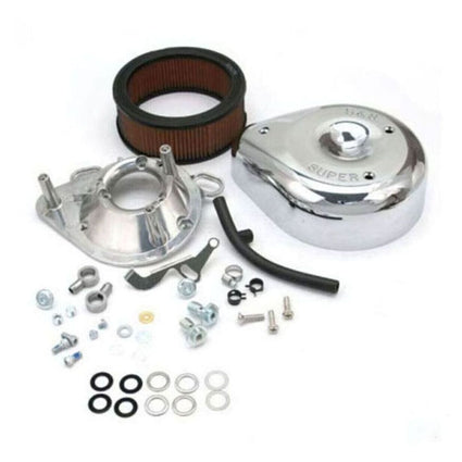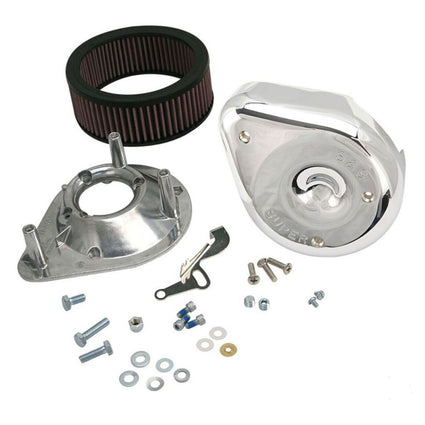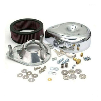 •Low restriction filter element comes pre-oiled for true plug and play installation•1" wider filtration area provides up to 37% more airflow over standard S&S filters•Resulting band of exposed filter material imparts a high-performance look•Kit contains a wide filter and filter spacers
